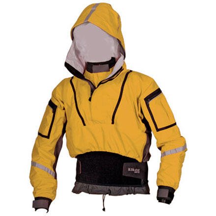 Kokatat Gore-Tex TecTour Anorak Kayak Paddling Jacket - Kokatat's Gore-Tex Kayaking TecTour Anorak is the top of the line touring shell for paddlers wanting the most technical features and fabric in a paddling jacket. Amazingly comfortable, Performance Shell waterproof-breathable fabric is ideal for athletic kayakers wanting full-featured, 3-layer protection in more demanding conditions. GORE-TEX seam tape permanently seals out water. An integral wide-billed, multi-adjustable storm hood provides exceptional protection and comfort in changing weather and water conditions. The mid-length front zipper with double storm flap and the adjustable Lycra-coated splash collar allow you to further ventilate for conditions. Latex wrist gaskets seal out water, while protective overcuffs guard against abrasion and UV. The double-tunnel waist with a smooth-skin neoprene waistband allows the Anorak to mate with your skirt, creating a dry system. Zippered arm pockets with a key lanyard keep essentials close by, and reflective tape and piping increase visibility in low-light conditions. The Kokatat Gore-Tex TecTour Anorak kayak paddling jacket the ultimate piece of clothing in touring circles.