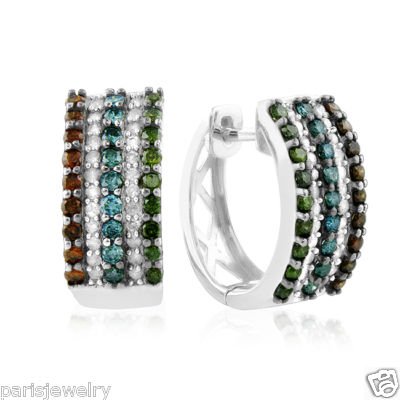 Paris Jewelry 14K Yellow Gold 4 Carat Genuine Blue, Red, Green and White Diamond Hoop Earrings ( I-J, I1- I2 )