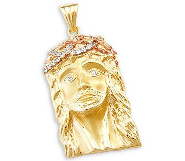 Brand new 14k yellow and rose gold jesus face pendant / charm. This elegant item is pure 14k gold, not plated. This item includes dazzling CZ's accross the head and eyes for a stunning look. The bail is extremely durable. The pendant is absolutely stunning and we are confident that you will love it.