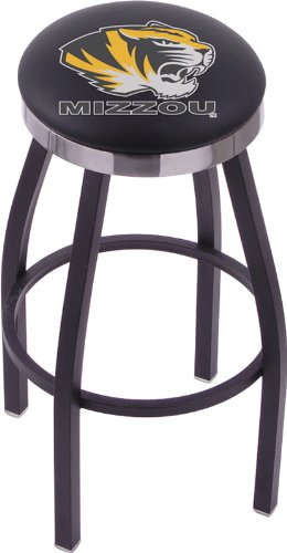 Commercial quality frame is plating grade steel with solid weld construction Black epoxy-polyester powder coat finish with chrome trim Available in 25'' Counter or 30'' Bar height Seat boasts a commercial grade vinyl cushion that coordinates with the logo colors Silk screened logo of your favorite team Silk screening process uses specially formulated vinyl paints which enhance the clarity, detail, and durability of the logo You will not find a higher quality logo seat on the market Commercial quality and will fit well in both residential and commercial applications 1-Year residential warranty that covers any defects in workmanship or materials Lifetime Warranty on the swivel Stool rated for up to 400 lbs Made in The USA Entire University of Missouri collection available, including coordinating Pub Tables